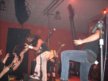 Decían que se lo estaban pasando de puta madre, y se notaba en el escenario, y también abajo, entre el público, entregado éste totalmente al buen concierto de los madrileños. “Matar” era dedicada a Miguel “Mike Leprosy”, desatando el muy buen y cañero tema “headbanging”, tanto sobre las tablas como al borde de ellas.