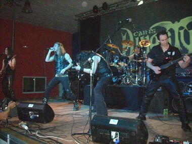 Salieron los cuatro instrumentistas, J.J. Ruíz (guitarra), Paco Castillo (bajo), David Sabater (batería) y Pablo Rizo (guitarra; último en entrar en la formación), y comenzó a sonar una larga introducción grabada, saliendo después el vocalista Rubén Picazo. Entre la introducción y el primer tema, “Breaking The Blood Lines”, hubo un momento de silencio, y es que los teclados pregrabados que llevaban, más de una vez les jugaron una mala pasada, constándoles que comenzaran a sonar. Durante ese desconocido, para mi, nueva canción, Rubén cambió de registro varias veces, de una voz heavy, pasaba a otra rasgada, o gutural, siendo acompañado en los coros por el bajista y el guitarrista Pablo. Rubén intentaba animar al aún escaso público que estábamos viendo su actuación, aunque un pequeño número de personas les apoyaba muy cerca del escenario.