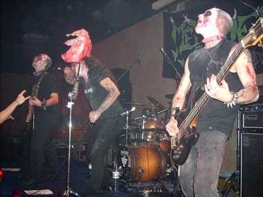 Después de la primera canción tuvieron que parar y solventar un problema técnico. Ya solucionado, el ritmo de la batería de Gerardo “Wacho” abría “The Satanic Dance”. Blandiendo un machete (¡a lo Brujería!) durante el tema el vocalista Gino “The Destructor”. El bajista Anthony “Shoes” hacia el final animaba aún más a la peña, que estaba respondiendo bastante bien ante el primer concierto del quinteto.