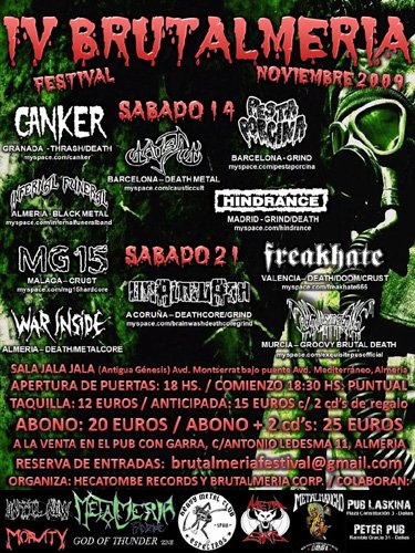 El trabajo en conjunto de Pedro (Hecatombe Records) y Mariano (BrutAlmería Corp.) cada vez se afianza más y una muestra es que el festival BrutAlmería ya va por su cuarta edición, consiguiendo que el nombre se haya hecho más conocido en el circuito underground de Metal Extremo en nuestro país. Los que llevamos asistiendo al festival desde sus comienzos bien que nos alegramos enormemente.