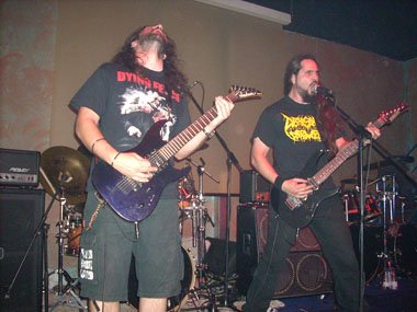 Roger, que guturalizaba yendo de un lado a otro del escenario, presentó “Legacy Of Terror”, perteneciente a su última obra, “The Horror Cult” (Hecatombe Records, 2005). Acompañada la composición de Brutal Death Metal por movimientos de cabeza por parte de Roger y del bajista Xavi. Además del mal sonido que les acompañó en toda su actuación, sonaron molestos acoples en el tema que abría el segundo, y hasta ahora, último disco. La siguiente canción, “El reinado del invertebrado”, también fue de ese trabajo. Intentando animar en balde el activo vocalista. Volviendo a escucharse jodidos acoples.