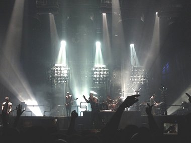 Acaba la canción y vuelve la oscuridad hasta el comienzo de la siguiente. Esa sería una tónica en todo el concierto, la oscuridad y la ausencia de comentarios hacia el público sería una constante en todo el concierto. Ninguna canción fue presentada. Entonces da comienza otra canción del último ,“B********”, mucho más tranquila que la anterior, seguida de otra de ese nuevo álbum, “Waidmanns Heil”, que no suenan mal, pero los allí presentes, o creo que puedo hablar por la mayoría, estábamos deseando que empezaran a caer los clásicos indispensables.