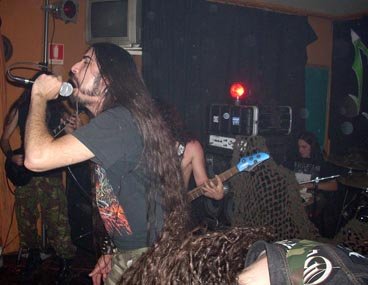 La puesta en escena del grupo es sencilla pero bastante efectiva, recordándome a la de los portugueses GoldenPyre, con todos los componentes vistiendo pantalones de camuflaje (el vocalista Sinergy con una funda y pistola en su pierna derecha), red también de camuflaje delante de la batería y casi la total oscuridad en escena, salpicada por luces y efectos sonoros (encargándose un chaval al lado de la batería de todo eso, ¿Dante?), como se pudo comprobar durante “Winter Holocaust”.