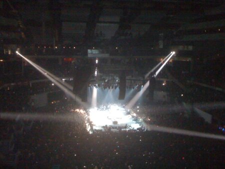 Cuatro féretros metálicos colgaban del techo del Palacio, uno a cada esquina del escenario, que sujetaban focos y emisores de láser. El fondo sur de la pista estaba reservado al pasillo por el que se accedía al backstage y a gente de varios clubes de fans, además de la mesa de mezclas de exteriores, ya que las dos de interior estaban junto a los bordes del escenario, sitios en los que también se colocaban los pipas para poner a punto las guitarras y el bajo.