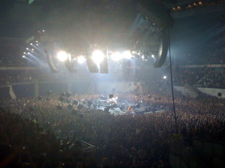 Tras los saludos correspondientes continuaron con “The Four Horsemen”, que sonó bestial, y “The Memory Remains” del “Reload”, que clarísimamente sobró. El sonido era horroroso, al menos donde yo estaba. Me tocó por encima de la cota de los altavoces que colgaban del techo del recinto, supongo que en otros puntos se escucharía mejor, pero desde allí no se apreció la batería en toda la noche, el bajo era como una especie de pelota sonora que lo enguarrinaba todo y los solos de Kirk Hammet sonaban como un batiburrillo que los hacía difícilmente reconocibles.