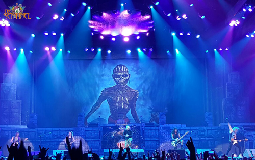 Más ilusión me hizo escuchar la intro de “Powerslave”, uno de mis temas preferidos de toda su carrera. Con un telón en el que en vez de una pirámide egipcia aparecía una maya, y con Bruce Dickinson cubierto con una máscara de luchador mexicano (¿?), fue uno de los momentos de la noche. Realmente impresionante, tanto por la exhibición vocal de Dickinson como por el rendimiento del resto del grupo, en especial los tres guitarristas. Pelos como escarpias, sobre todo en el momento que vuelven de la parte central lenta y vuelven a la carga. Inenarrable.