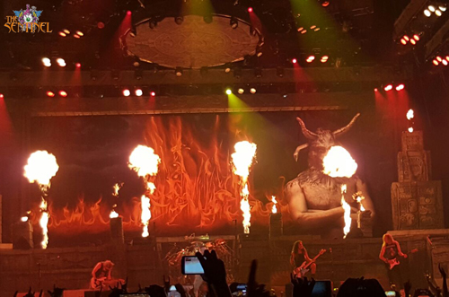 Tras ella, la banda desapareció del escenario, que se quedó a oscuras… hasta que sonó la inconfundible introducción del Libro de Revelaciones que da paso a “The Number Of The Beast”. El gran clásico. Y el Palacio de Deportes se puso patas arriba, claro, con todos a mi alrededor cantando no sólo el estribillo sino todas las estrofas. Y es que este tema está grabado a fuego en el corazón de todos los presentes.