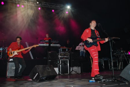 El concierto se había preparado a conciencia para ser algo especial, y pronto comprobaríamos hasta qué punto iba a ser así. En un lado del escenario apareció una sección de viento que iba a enriquecer aún más el sonido del grupo. Por el otro lado, aparecieron los primeros invitados. En este caso invitadas, ya que ataviadas en unos espectaculares trajes blancos, aparecieron Viky, Luisi y Susi, más conocidas como “Las Supremas de Móstoles”, cuya vida tanto personal como artística siempre ha estado ligada al Rock. En el plano personal, Julio se congratuló de conocerlas desde muy temprana edad, y a nivel artístico, Viky y Luisi pertenecieron al grupo Jerusalem y, sobre todo, las recordamos por su colaboración con Ñu en el disco “El mensaje del mago” de Ñu y su gira posterior. Sus coros en “Amor en el cielo” y “Una copa por un viejo amigo” quedaron para la historia. A día de hoy, colaboran con multitud de artistas y participan asiduamente en un magazine radiofónico. Desde las horas previas al concierto fueron la sensación de los aledaños, derrochando simpatía y buen humor por donde pasaban. Ya en el concierto, a su impactante puesta en escena, bailando y bromeando sin parar, hay que sumar las privilegiadas voces que aún conservan. En “Nunca está de más” se limitaron a hacer coros, pero en “Nada, nadie, nunca” se desmelenaron, ocupando todo el escenario y encargándose de la voz solista en partes del tema. Realmente impresionantes, sin duda se metieron al público en el bolsillo.