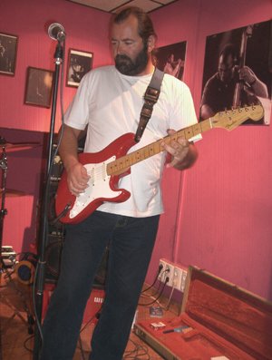 Estábamos situados con amigos y colegas al fondo del pub, cerca de la barra. Comprobé que había espacio suficiente adelante, la peña que estaba más adelantada se había situado a unos dos metros del escenario. Así que como la gran columna nos tapaba a “Robin” y había sitio libre adelante, allí que nos plantamos unos pocos / as, viendo bien de cerca a los músicos.