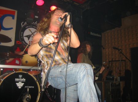 Tras la presentación de rigor a cargo de José Mora, con el recuerdo de nuevo a Javier Gálvez, Mr. Rock salió a escena comenzando el set con “Yo soy el Rock & Roll”, al que siguió “Preparado”. Los dos primeros temas bastaron para mostrarnos de lo que son capaces. Mr. Rock es un grupo ya hecho, con un alto nivel en todos sus miembros, y una contundencia y cohesión que pedía a gritos dejar de ser una banda de versiones. La pareja de guitarristas se combina a la perfección, con el estilo clásico de Manuel Manrique que combina con el más técnico de Nacho Ruiz. Víctor Castellanos le daba de lo lindo a los parches, perfectamente compenetrado con Santi Hernández, quien se mostraba totalmente integrado en el grupo. Y al frente de todos, Julio Dávila, a quien vimos hace poco en el mismo escenario al frente de Dr. Snake, manteniendo con Mr. Rock las mismas poses y movimientos a lo David Coverdale.