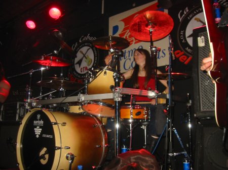 Siguieron desgranando su último disco, y “Lágrimas sobre el cristal” sonó muy bien, con ese punto melódico que el grupo le da a sus temas sin perder su dureza, y con el que definitivamente descubrí a Emma López como el elemento más valioso del grupo. Es inhabitual encontrarnos con una chica a los tambores, un instrumento que requiere más poderío físico que los demás. Quizás por ello, Emma no tiene una gran pegada, pero su depurada técnica le hace ser el músico más sobresaliente del grupo, como se demostraría también en el siguiente tema, “El Beso del Sol”, que abría su disco debut “Encenderé tu fuego” y en el que Emma dio una verdadera exhibición a la batería.