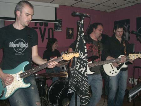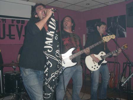 Después del primer tema el bajista José había dejado su lugar entre Jesús y Antonio y se posicionó al fondo del pequeño escenario, tras José y a la derecha de la batería de Antonio.