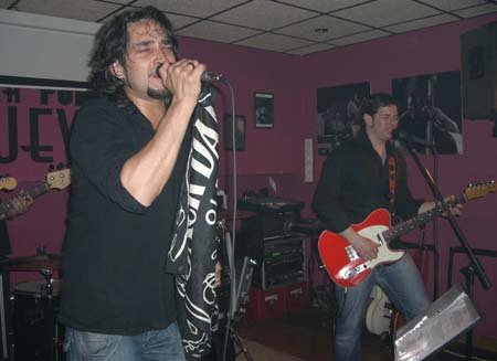 “Hoy” y “Estoy aquí” fueron sus dos primeras canciones, donde los solos de guitarras se sucedieron y el cantante Jesús acompañó con pandereta. El tema de apertura pertenece a su segunda grabación, y hasta el día de hoy última: “Mi antídoto” (La Crème Records, 2005), y si no me equivoco la segunda y la siguiente, “Sin ti” (con armónica soplada por Jesús), son nuevas composiciones.