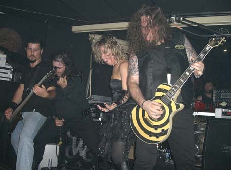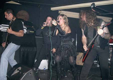 Enlazaron la intro con la metalera “Sed de mal”, la canción que le sigue al corte de inicio en el nuevo disco. Apoyando a Salva y Gloria en coros el guitarrista Luirry y el baterista Pablo. Potente tema de inicio que sin descanso unieron con una del primer disco, la buena “Alma en pena”, llevando la voz principal Gloria, y el grupo cabeceando al ritmo del tema dando buena imagen.