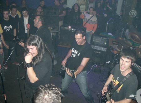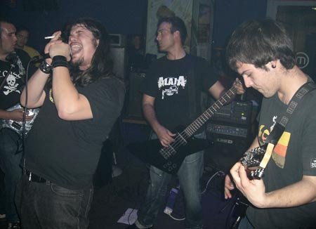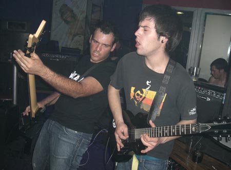 Después de la versión de los fineses comenzaron las dedicatorias personales, para continuar versioneando, en esta ocasión el single “Inside The Fire” del último disco de Disturbed. Me descolocaban pasando de versiones de un estilo a otro, y es que se notan que están empezando, porque no tienen definido aún su estilo. Además del sonido que era deficiente, aunque tras los controles hacía lo que podía el buenazo del técnico de sonido Manolos Salas (¡ese figura en la añorada sala El Rockero!), al jovencito vocalista le faltaba mucha más potencia en su voz.