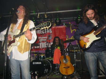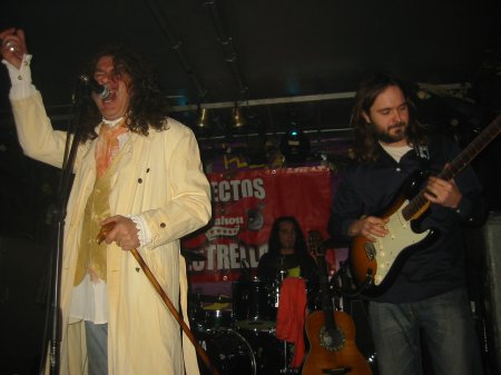 Con 15 minutos de retraso sobre la hora prevista, la banda subió al escenario para abrir el concierto con “A medias”. Miguel Oñate, con su profesionalidad habitual, apareció con una cuidada imagen que incluía chaleco dorado, largo pañuelo al cuello, gabardina clara y un bastón que le daba un toque de distinción. Pronto encadenaron con “La torre de papel”, llenando de fuerza estos primeros minutos de concierto, demostrando que tanto los temas como la banda pueden moverse tanto en un entorno acústico como desplegar la energía necesaria en una banda de Rock. La aportación de Peri fue importante, sonando contundente y formando una magnífica pareja, a pesar de la eventualidad de la unión, con Txema Fernandes, quien ha mejorado ostensiblemente su calidad como batería, o al menos eso nos pareció en esta noche.