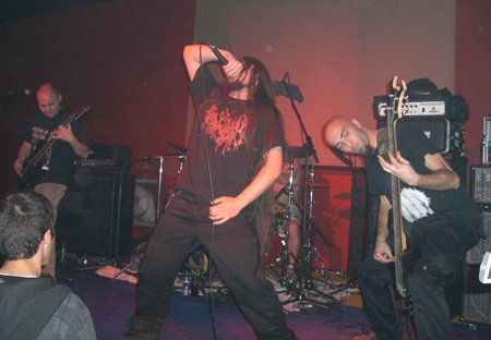 Invitaba a subir al escenario a Miguel (Human Mincer) para cantar una versión de Cannibal Corpse: “Engargoyling The Dethroned”. Versión que incluyó en el compartido “Supreme Brutal Legion Vol. 3” (Vrykoblast Productions & Darzamadicus Records, 2008). Echando un vistazo al listado de temas, venía después “A Skull Full Of Maggots”, también del grupo de Florida, pero no la hicieron, o quizás la unieron, o ésta fue la que tocaron, no lo sé porque no estoy familiarizado con los temas de los norteamericanos.