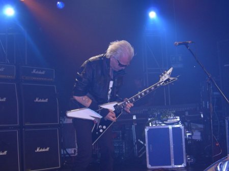 “Cry For The Nations”, y uno de mis favoritos “Let Sleeping Dogs Lie”, parecieron corregir algo el sonido pero aquello continuaba siendo horrible, aunque la primera fila tampoco creo que de para perfecciones acústicas. Quiero destacar que pocas veces he disfrutado tanto en un concierto con el bajista, pero hay que reconocer que Chris Glen es de los músicos que tienen una calidad tremenda, sin mucho movimiento, pero marcando unos latigazos de cuerda que llevaban toda la base rítmica, totalmente definida por la firma de este gordito con una estampa totalmente sureña. A Michael Schenker pocas veces lo he visto tan bromista en el escenario y tan partícipe en el concierto, moviéndose, cantando, y conectando con el público.