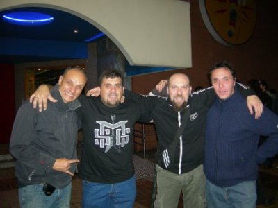 Eran cerca de las ocho y mirábamos el reloj algo inquietos. Gary pedía otras cervezas y otro carajillo y la conversación cada vez era más cercana y sentíamos que estábamos pasando un rato cojonudo, así se lo manifestamos, gracias al perfecto entendimiento del lenguaje con mi hermano fruto de una etapa vivida en Escocia hace unos años. Le pregunté por qué casi todos los cantantes fumaban y me contestó que efectivamente era así, que los más grandes, incluidos el mismísimo R. James DIO eran fumadores “activos”. Después de bromear y sacarnos algunas fotos miramos de nuevo el reloj y quedaban escasos 30 minutos para comenzar el concierto, se apresuró a dar un último trago a su café con coñac y nos despedimos, no sin antes solicitarle que nos dedicara el tema “On And On”. “No hay problema, os lo dedicaré, pero quiero veros en la primera fila, ¡pues en eso quedamos!” Nos despedimos con un caluroso abrazo y a la hora de pagar nos dijo: “Esta ronda la pago yo”.