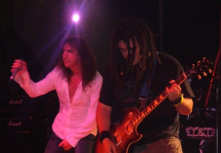 Y el caso es que Stormzone se quedaron con todo el mundo, e hicieron un buen concierto. Dirigidos por un potente vocalista, que si bien mostró a las claras que su punto de referencia es David Coverdale, también demostró personalidad propia y bastantes tablas encima del escenario, arengando al personal en todo momento para que participásemos en su espectáculo, y amén que lo consiguió, porque para ser una banda semidesconocida, la respuesta del respetable fue espectacular y esto les hizo subir muchos enteros durante todo el concierto.