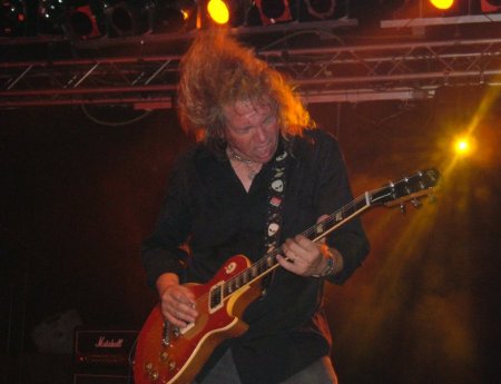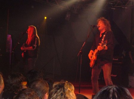 Abrieron con “Spellbound”, canción que abre su único disco, y en ese momento mi colega Luis me comenta a ver si no me enterado de quienes son los dos tíos que para ver a los irlandeses se han puesto junto a nosotros. Yo, que no me había dado ni cuenta de esas dos personas, les miro y compruebo que son John Nymann y Mike Vanderhule, guitarrista y baterista de Y & T. Tras un breve saludo y recordarles que hace menos de un año también nos saludamos en Bilbao, cada uno volvemos a lo nuestro, es decir a observar lo que sucedía encima del escenario.