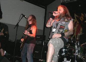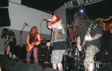 El grupo se presentaba como quinteto, sin uno de sus vocalistas, Jaime Hooper (en reposo por sus cuerdas vocales). El vocalista Cam Pipes (con chaleco lleno de parches metaleros), los guitarras Justin Hagberg (encargado de la voz gutural) y el barbudo Shane Clark, junto al bajista Nick Cates, y al baterista Ash Pearson (les echa una mano en directo), tras una intro, comenzaron con “Night Maraduders”, segundo corte de su tercer y reciente álbum, “Fire Up The Blades” (Roadrunner Records, 2007). El cantante durante el tema pedía que pusiéramos cuernos.