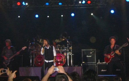 Sin teloneros de ningún tipo, y con una puntualidad exacta, a las 9 en punto se apagaron las luces, y con parsimonia los músicos fueron, uno a uno, tomando posición en el escenario, para entrar en calor con la intro “Majestic”. Como no podía ser de otra forma, la mayor ovación se la llevó Neal Schon, aunque las miradas curiosas iban encaminadas a Arnel Pineda, el nuevo miembro de la banda, aclamado por multitud de compatriotas repartidos por el recinto, que le apoyaban incluso con una bandera de Filipinas que Pineda recogió y ondeó desde el escenario en más de una ocasión. “Majestic” fue fundida con “Never Walk Away”, con la que pudimos comprobar en directo aquello que habíamos investigado en los vídeos de la gira que están colgados en Internet: La voz de Arnel Pineda es un calco del timbre de Steve Perry, al que se asemeja de forma asombrosa. Al grupo se le ve en forma, a pesar de que el sonido no terminaba de ser bueno, con poca definición, sobre todo en lo tocante a la voz y a la guitarra. Durante el concierto fue mejorando, sin llegar nunca a ser el sonido nítido que merece un grupo de esta calidad.
