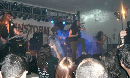 Del penúltimo disco, “Among The Gods” (SPV, 2004), sonó la primera, “Black Rain” comenzando con los guitarristas Matthias Mineur / Sven Lüdke y el bajista Markus Brinkmann en el centro meneando sus greñas a ritmo del tema, mientras la peña vociferaba.