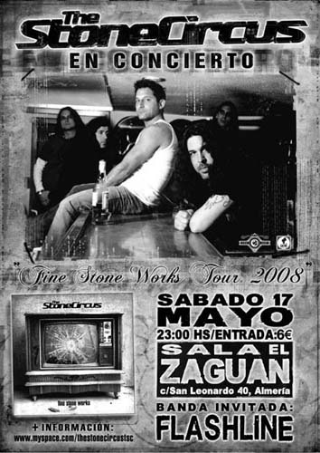 A las 23.38 h. (dieciséis minutos después que acabaran Flashline) dieron comienzo. Venían a presentar su primer disco, “Fine Stone Works” (2007). Dándonos durante un poquito más de cincuenta minutos una lección de cómo se toca excelente Hard Rock de regusto tanto clásico como más actual. Sin destacar nadie en especial en la buena labor general de los cuatro músicos (Álex Moure – guitarra; Pepo Suárez – guitarra; Manuel Puche – bajo; y Rafa Fernández – batería) acompañando la desgarradora y genial voz del uruguayo Juan Ferro “Little Voice”, con un registro semejante a grandes y personales vocalistas como Tom Keiffer (Cinderella), Dan McCafferty (Nazareth)…