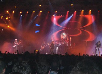 Al poco de ubicarnos (lado derecho de la mesa de mezclas), y cuando pasaban un par de minutos de las diez y media de la noche, se apagaron las luces y los escorpiones atacaban con la moderna “Hour I”, seguro que mucha gente de la que había ido allí ni sabía que pertenecía a su último disco de estudio “Humanity: Hour I”, y es que por allí había peña que tan sólo conocía los temas más sonados, especialmente baladas. En la gran pantalla del fondo se proyectaba el nombre del grupo.