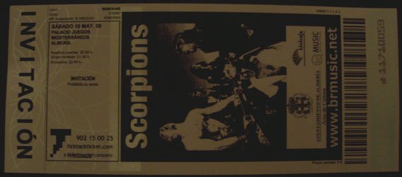 El ayuntamiento almeriense, del PP (para que luego digan, y que conste que soy totalmente apolítico, y si me tengo que mojar tiendo más a la izquierda que a la derecha), se está portando de maravilla a la hora de acordarse del Rock, y traía esta vez a los germanos, con la ayuda de una promotora granadina que comienza a lanzar sus redes en Almería. Aunque el precio me pareció un tanto caro (40 €), imagino que por el caché que cobrará el grupo, porque en espectáculo tampoco es que uno se quede embobado. Según información oficial el escenario tenía unas medidas de 18 x 16 metros, con una pantalla tras la batería de Kottak donde se proyectaron imágenes de la banda y diversos coloridos e imágenes, y 200.000 watios de luz y 150.000 de sonido. Servidor tuvo suerte y consiguió una de las cinco entradas dobles que se sorteaban en la página web del periódico Almería Actualidad, al ser elegida la foto que envié como una de las fotos más heavies, jejeje, asemejándose mi careto a la portada del disco “Blackout” (aunque sin tenedores), primer disco que escuché entero de ellos.