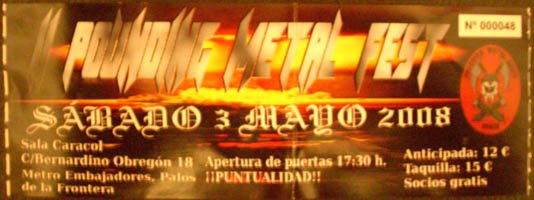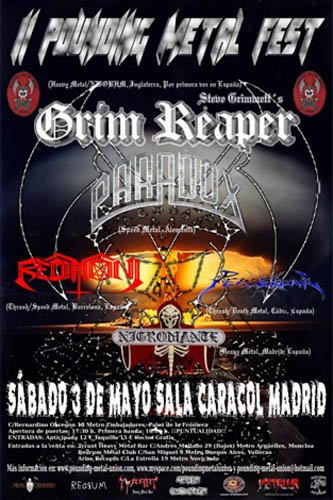 P.D.: Agradecer a Pounding Metal Union su buen hacer, aunque aún queden bastantes cosas que mejorar a nivel interno para los socios (y más si son de fuera de Madrid); a Choco (Nigromante), John (Perseidan), músico responsable de Myspace de Redimoni, Charly (Paradox), y Rich (Steve Grimmett) el listado de temas para contrastarlo con mis anotaciones.