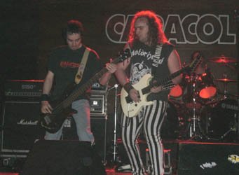 “Sindicato criminal” y “Agitador” fueron los dos primeros temas de apertura, como dijo el vocalista y guitarrista Choco, tras la primera, pertenecientes a su maqueta (la tercera) que tenían a la venta en el puesto de merchandising (y que más tarde compré). Como ya he dicho anteriormente, su estilo es un buen Heavy Rock de sonido ochentero con voz macarra.