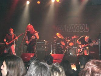 El cuarteto catalán tras una Intro empezó a dar cera thrash metalera con “Infernal”, primer corte de su primer larga duración, “Into The Coiling Arms Of Mayhem” (Witches Brew, 2008). El guitarrista situado a la derecha, llevaba un hábito de monje, y su cara pintada, encargándose de alternar labores vocales con su otro compañero guitarrista, aunque el monje tenía un registro chillón.