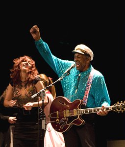 El público se ponía en pie ante las primeras notas del clásico “Johnny B. Goode”, pidiendo que se subieran las mujeres a bailar. La banda tocando, las chicas bailando alrededor, y hasta una pareja, y Berry, ni corto ni perezoso, antes de que acabara el tema desaparece del escenario sin despedirse, terminando la banda y dando las últimas palabras el hijo del músico. La gente de pie aplaudiendo, pero la mayoría con unas caras de asombro y estupor por el final, sin despedida ni bis ni nada más.