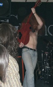 Cuando ya era media noche el cuarteto subía al escenario y el vocalista Julián “Insane” Martín daba las buenas noches y agradecía el que estuviéramos allí, para dar paso a “Never Raised”, uno de los temas pertenecientes a su maqueta “Sucka Sucka Doll” editada a finales del pasado 2007. La siguiente, según como decía el cantante, era una oda a la cerveza, “Mr. Lager” (también de la maqueta, y del E.P. anterior a ésta, “Psychoroad!!”), con coros del guitarra Augusto “Docker” Lao pegado junto a Julián para cantar en su micrófono. En esas dos andanadas sónicas ya habían presentado sus credenciales de manera contundente, potente y enérgica, Hard Rock del clásico, sin más etiquetas a añadir, basado en la mejor época de los 60 y 70.
