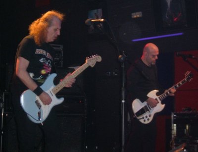 Así que las dudas desaparecieron a eso de las 23:15 de la noche, cuando se apagaron las luces y empezaron a sonar los primeros acordes de “Al final perderán”. Allí estaban los de siempre, o sea, los hermanos De Castro más las dos nuevas incorporaciones: Rafa Díaz (actualmente también en Neomenia) tras la batería, la cual y en su bombo aparte del logo de Barón Rojo figuraba su nombre, y Tony Ferrer al bajo, músico conocido por formar parte de Los Parpel, banda tributo a Deep Purple y que hacen unas magnificas versiones de estos, la camiseta que llevaba puesta ya daba alguna pista.