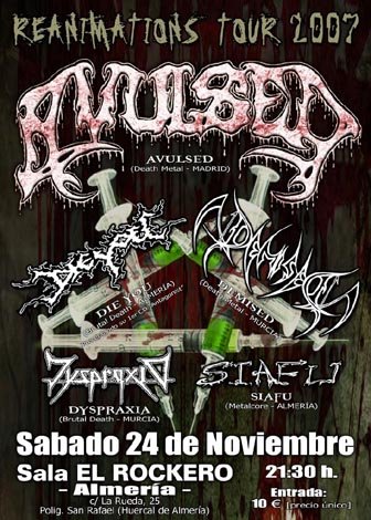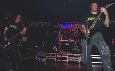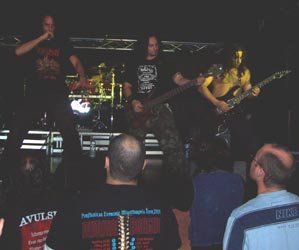 Muy atractivo cartel de Metal Extremo compuesto por bandas de nuestro país, y que no tuvo la respuesta de gente que se merecía. Allí faltaba gente que siempre se está quejando de que no viene nada de caña a Almería y que a veces dan mucho por saco en los garitos pidiendo que le pinchen tal y cual grupo, otros que viven del pasado contando batallitas para encandilar a las nuevas generaciones y luciendo camisetas… metaleros de bar que últimamente abundan mucho y que poco hacen porque se siga confiando en la peña a la hora de hacer conciertos. Vamos, que si no llega a ser por gente que vino de provincias vecinas y cercanas aquello hubiera sido casi como estar en un ensayo. Y como digo, si este tipo de carteles no mueven a gente, ¿qué esperan?, ¿qué sólo se traiga a grupos internacionales?. Aunque esa es otra, luego se traen y hasta última hora los organizadores, Mr. Navarro y compañía, están acojonados de no perder dinero.