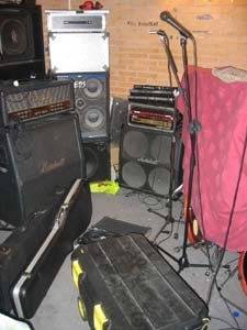El primer concierto estaba previsto en la Sala La Telonera, sita en la localidad de Armilla, población muy cercana a Granada. Como es habitual, la banda se reúne en el local de ensayo antes de la hora de comer (en algún caso después de pasar por el lugar de trabajo, en otros directamente se pide el día libre o se descuenta de las vacaciones). Es momento para desmontar el equipo que vamos a transportar y meterlo en la furgo. En esta ocasión yo fui el primero en llegar y ahí mismo tomé la primera foto. Para nosotros es algo básico hacer este trabajo de forma relativamente eficiente, de lo contrario perderíamos un tiempo precioso para realizar pruebas de sonido con tiempo para que todo marche bien posteriormente. Si alguien se retrasa, si tenemos problemas con el alquiler de la furgoneta, si el equipo no está listo, empezarían irremediablemente los problemas, las prisas o las multas por exceso de velocidad, todo hay que decirlo.