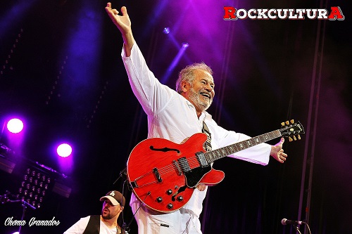 Arropado por Javier Arnáiz “Bumper” a la batería, el carismático Peter Mayr con el Hammond, Luis Calzada a la guitarra, Ramón Álvarez al bajo y dos guapas coristas que no pararon de bailar mientras hacen coros, José Carlos Molina se mostró pletórico y feliz.