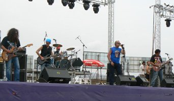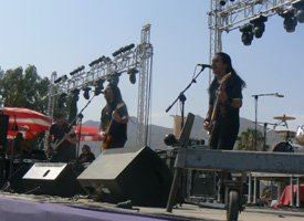 A eso de las 14:00 llegábamos al recinto, ahí estaban ACEQUIA con un Santiago Campillo sin su habitual camisa, esta vez con camiseta negra tal vez para ir al son del digamos… Rock & Roll urbano macarrilla de la banda que con un Emilio Chicheri a la voz interpretaban temas como “El trotacarreteras”, “Cervezas del Metal”…