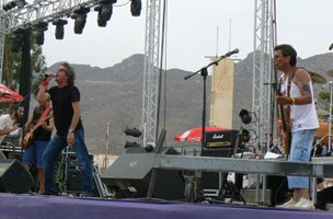 Le llegaba el turno a un grupo en auténtica crisis, LOS SUAVES, en el penúltimo concierto con su actual formación. Un Yosi desbordado por el vicio y las críticas pero que esta noche de Bolnuevo no lo hizo tan mal, aguantando el tipo bastante bien con un “O afilador”, muy bien interpretada en gallego, “Maldita sea mi suerte”, “Si pudiera”, “No puedo dejar el Rock”, “Mi casa ”…
