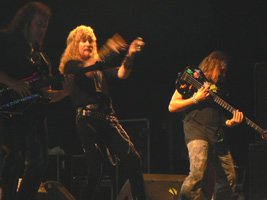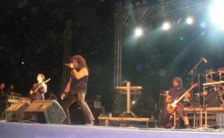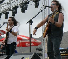 Grande era la expectación que despertaban los asturianos WARCRY entre los más jóvenes, siendo ellos uno de los grupos que más gente congregó, andan que se lo comen todo atacando con un “¡Que vengan ya!”, primer tema se su último trabajo “La quinta esencia”, siguieron con “Más allá”, “La vieja guardia”, tema también de su último trabajo que agradó bastante a los asistentes. La banda estuvo perfecta destacando a un Víctor que lo borda o un Alberto Ardines que pese a su escasa estatura domina la batería como nadie. Siguieron con temas como “Alejandro”, “Espíritu de amor”, una emotiva “Tu recuerdo me bastará”, lástima del sonido, que fallaba de vez en cuando. La actuación continuaba con la trallera “Buscando una luz”, para entrar al final del concierto con “Un poco de fe” y una participativa “Tú mismo”, volviendo al poco tiempo con “Hoy gano yo”.