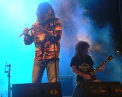 Y ahí estaba él, Manolo Arias, un tipo al que cada vez se le ve más disfrutar en el escenario. Llega “Preparan”, uno de los temas mejor interpretados de todo el festival… le siguió “Más duro que nunca”, el cual creía que era el último por lo que cuando tocaron “El flautista” me pilló de camino a la barra…