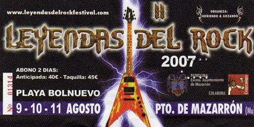 Esta segunda edición del Leyendas Del Rock ha valido para que se consagre el festival, superó en todo a la edición pasada. Más del doble de asistencia de público, un cambio de lugar, esta vez en la playa de Bolnuevo que creo que fue un acierto, habiendo más zonas de sombras, sobretodo en la zona de acampada, y estando más cerca de la playa. Los horarios se respetaron a rajatabla, el sonido fue bastante bueno durante todo el festival (pudiéndose mejorar en algunos aspectos), los precios de la comida y bebida fueron aceptables (5 € el mini de cerveza o cubata, 3 € el Red Bull, 2 € la cerveza o refresco y 1 €por botellín de agua)