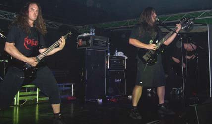 Lo de John Gallagher (voz/guitarra) y los suyos fue grandioso. Quizás uno de los mejores grupos en directo que he visto de Brutal Death Metal (o como lo queráis llamar) y sonando muy, muy bien. Tralla brutal por doquier, con un dominio instrumental conjunto de los ritmos y tempos alucinante. Gallagher (situado en la derecha según mirábamos al escenario) alternaba los gruñidos con el bajista/voz Sean Beasley (en el centro de las tablas). El nuevo batería Trey Williams (ex–Tortured, Severed Head, Covenance), sustituto de Duane Timlin, nos dejó a más de uno alucinando por su manera de tocar, y eso que llevaba poco tiempo en la banda, desde julio.