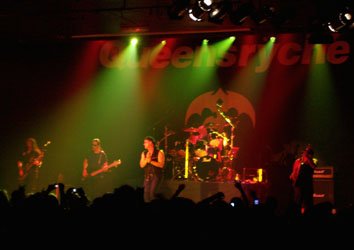 Geoff Tate salía con gafas de sol y gorra, estando bien a la voz, apoyado en coros por el bajista Eddie Jackson y Stone. Alargan la nota y enlazan con “Damaged”, de su disco en el que tomaron nuevos rumbos, “Promised Land” (EMI, 1994). No se veía a la banda, del todo asentada en escena. El guitarrista Michael Wilton realiza su solo junto a Tate. Siguen sin parar y arremeten con “Speak”. Situados en la parte derecha de la barra central el sonido que percibimos me parece malísimo, con abuso de graves y sonando por encima de todos los instrumentos la batería del genial Scott Rockenfield. Planteándome si merece la pena pegarse un viaje de 548 kms. y pagar una entrada tan elevada para escuchar un grupo en esas condiciones. Durante el tema de su obra maestra “Operation. Mindcrime” (EMI, 1988) el cantante dirige el micrófono al público para que cantaran parte del tema, llegando el frontman perfectamente a las notas altas. Una gran ovación suena cuando acaban la canción, gritando la gente con entusiasmo.
