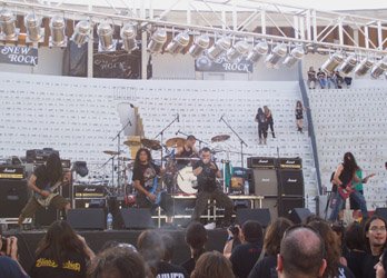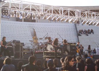 El festival llevaba un retraso de tres horas y durante la actuación de la primera banda me encontré con el colega alicantino Monty, que estaba trabajando para TNT Radio Rock, y me informó de las causas del retraso. Porque eso fue uno de los grandes errores que tuvo la organización. Durante el festival nadie dio la cara e informó de todas las desgracias sucedidas, aquello fue caótico y al final los perjudicados, como siempre, la gente que acudió al festival. Parece ser que el día antes el transporte que llevaba el equipo de sonido tuvo un accidente, teniendo la organización que buscarse la vida para conseguir un equipo de sonido en tiempo record, aunque tal y como sonaron la mayoría de grupos aquel día, creo que hubiera sido mejor suspender el festival, ya que no benefició nada que los grupos sonaran tan mal, y es que la mesa de sonido parecía de juguete. No sé por qué no se abrieron las puertas a su hora, así los de las barras hubieran sacado mucho más dinero, aunque visto después que durante el festival se quedaron sin vasos de litro y después sin cerveza… otro fallo a contabilizar más.