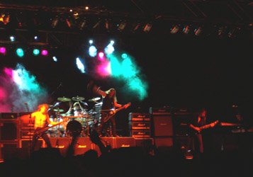 Retirada a las 2.22 h. para volver al instante para hacer de bis dos del disco publicado en 1997, “Valley Of The Kings”, con cambio de guitarra de Kai, y el tema-título “Somewhere Out In Space”, con el sonido que iba y venía. Durante la parte instrumental se marcha Kai y regresa al rato con otra guitarra. Agradece de nuevo al pueblo, más cánticos con el público y final apocalípticamente sonoro. Son las 2.41 h. y de nuevo vuelven y hacen “Send Me A Sign”, que parece una revisión al “I Want Out” de su anterior banda. Acaban con Kai subido a la tarima de la batería de Daniel Zimmerman, ralentizando el ritmo, y luego el líder saltando. Faltando diez minutos para las tres de la madrugada saluda el quinteto a pie de escenario.