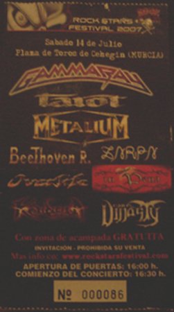 Cuando me enteré del cartel completo de la tercera edición de este festival me atrajo bastante. Especialmente por incluir a los finlandeses Tarot, que darían su primer concierto en España; volver a ver a una de las mayores e históricas bandas del Heavy Metal patrio como Zarpa, con un fenomenal reciente disco, “El yunque contra el martillo”; otra vez deleitarnos con la maestría instrumental de los alicantinos Overlife; ver por primera vez a Cain´s Dinasty, Kondena e In Pena; comprobar el estado en el que estarían Gamma Ray sin apenas haber escuchado temas de sus últimos discos y años sin verlos en vivo, y por último los compatriotas de éstos que nunca me dijeron nada, Metalium. Además se celebraba en un pueblo de una provincia vecina, así que no había que hacer demasiados kilómetros. Y había que apoyar la iniciativa, ya que era organizado con esfuerzo por dos seguidores de la música metalera. Fui siguiendo las novedades del festival, incluso en este webzine se les hizo una entrevista (en el archivo de entrevistas la puedes leer) a los dos organizadores (Adolfo y Juan, que llevan la productora y oficina de manager Rock Stars) para aportar un granito de arena para que el festival fuera más conocido e informar ampliamente a la gente interesada. Todo pintaba muy bien, y me hubiera gustado decir que todo salió a la perfección, pero no fue así. El festival, para alguien que no supiera los entresijos internos, se podría calificar de desastroso. Debemos agradecer la acreditación que nos concedieron, aunque no tuviéramos acceso al foso de fotógrafos.